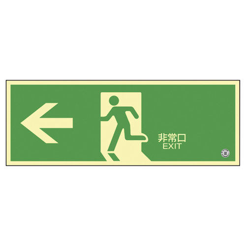 高輝度蓄光避難誘導標識(非常口左矢印360802(チクコウSN-2802) コウキドチクコウヒナングチユウドウ(日本緑十字社)  (24-7123-01)